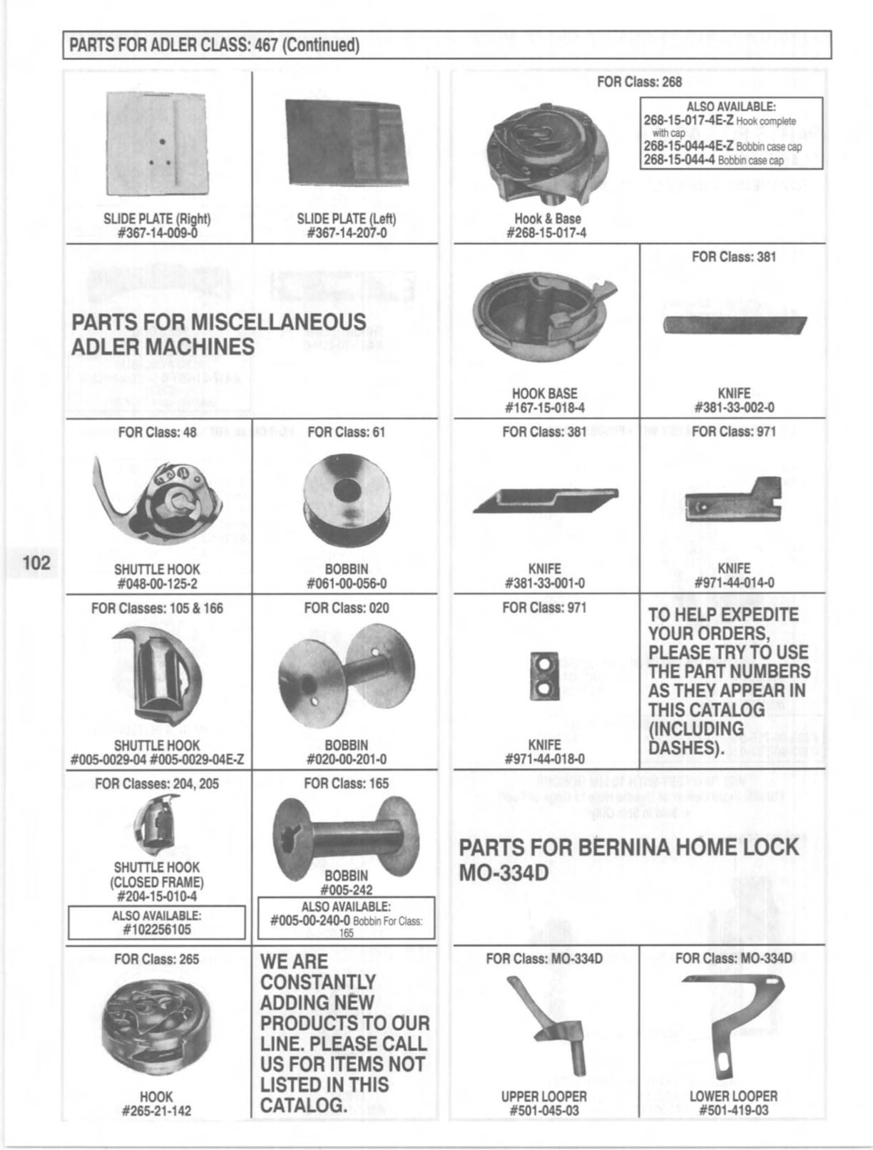 PARTS FOR ADLER CLASS: 467 (Continued)
