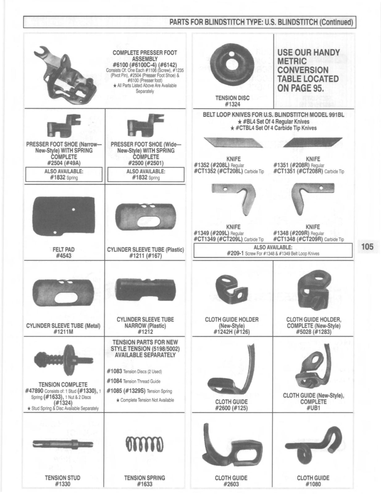PARTS FOR BLiNDSTITCH TYPE: U.S. BLiNDSTITCH (Continued)