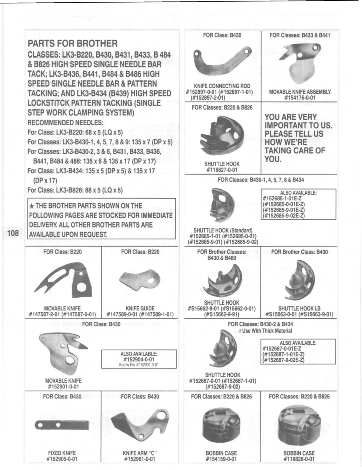 DELIVERY. ALL OTHER BROTHER PARTS ARE