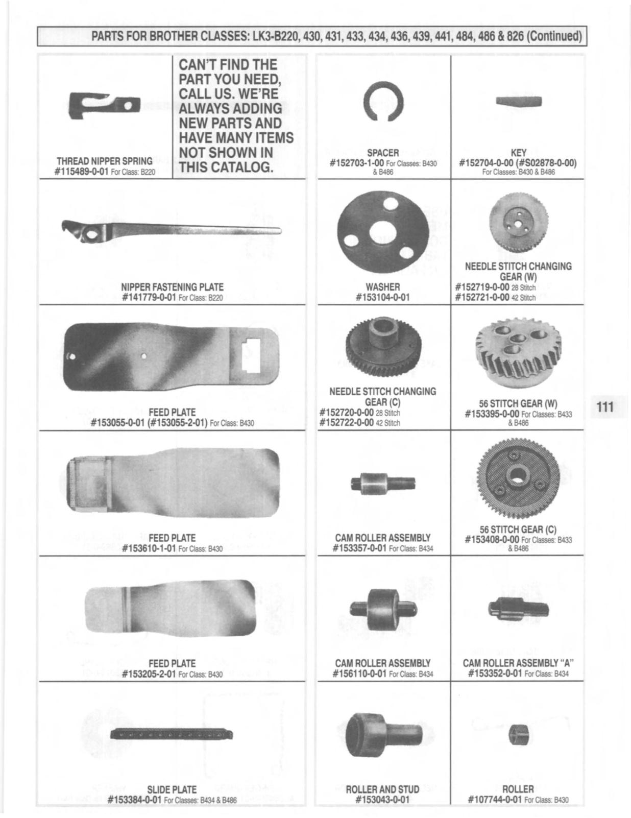 PARTS FOR BROTHER CLASSES: LK3·B220, 430, 431,433, 434, 436, 439,441,484,486 &826 (Continued)
