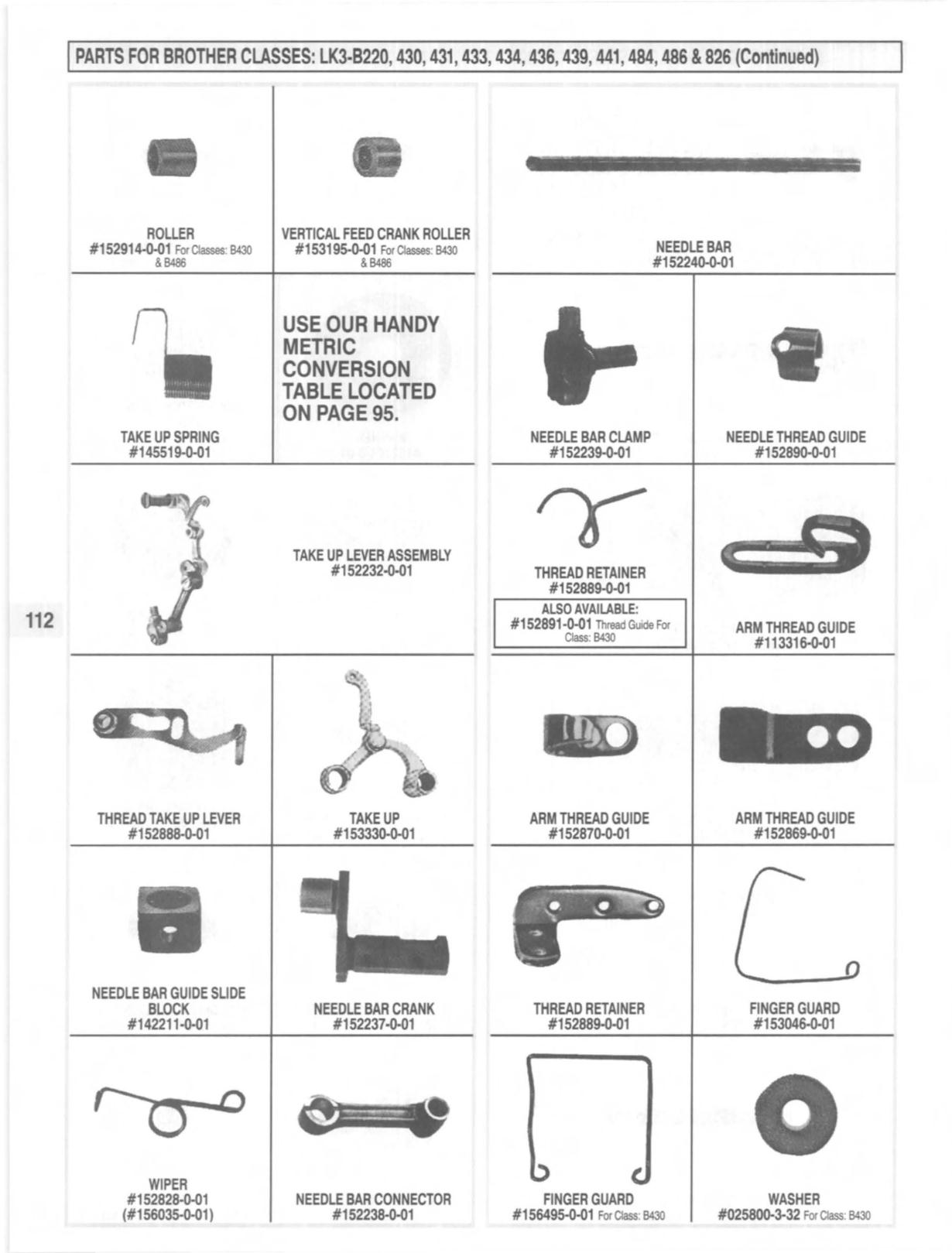 PARTS FOR BROTHER CLASSES: LK3·B220, 430, 431, 433, 434, 436, 439, 441, 484, 486