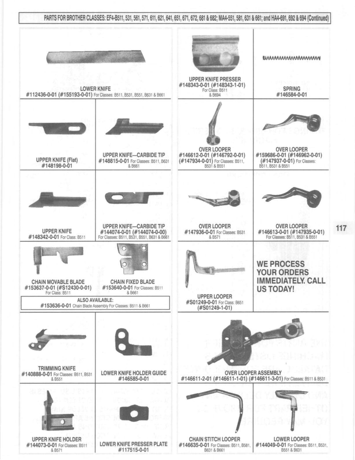 PARTS FOR BROTHER CLASSES: EF4-B511,531,