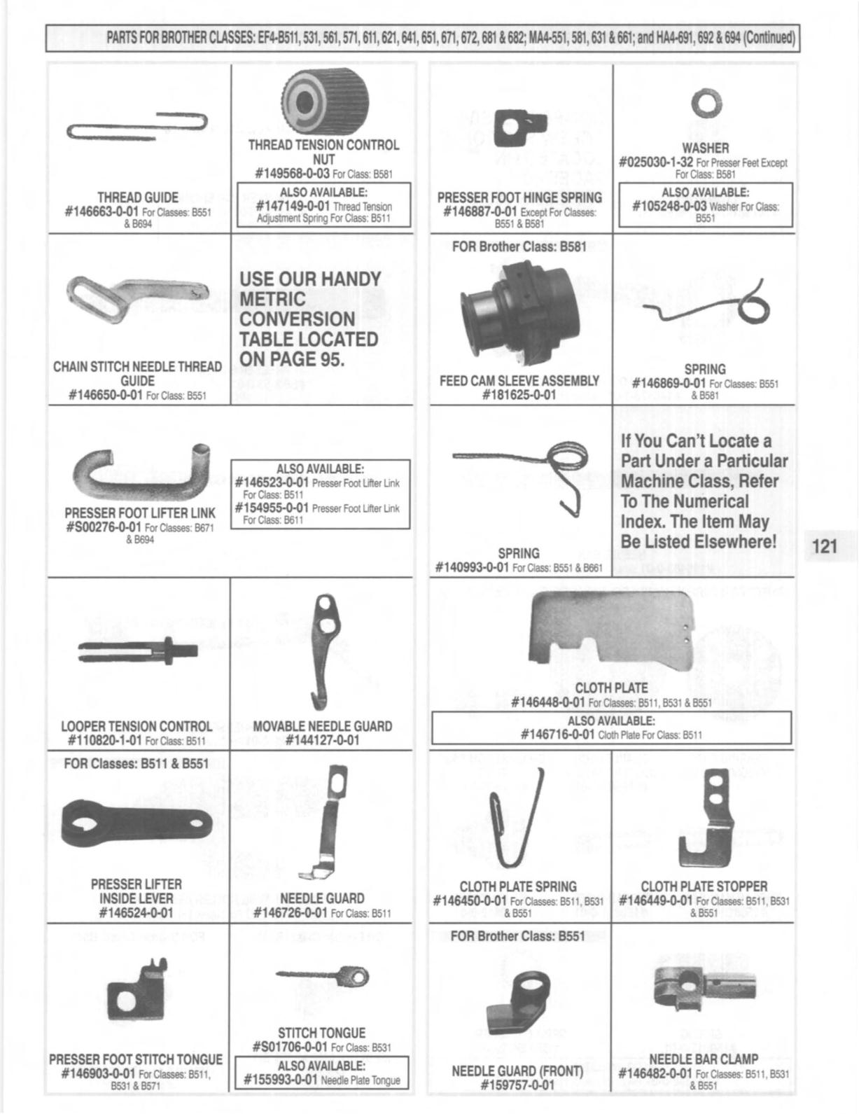 PARTS FOR BROTHER CLASSES: EF4-B511,531,561 ,571,611 ,621,641,651 ,671,672,681&682;MA4-551, 581,631