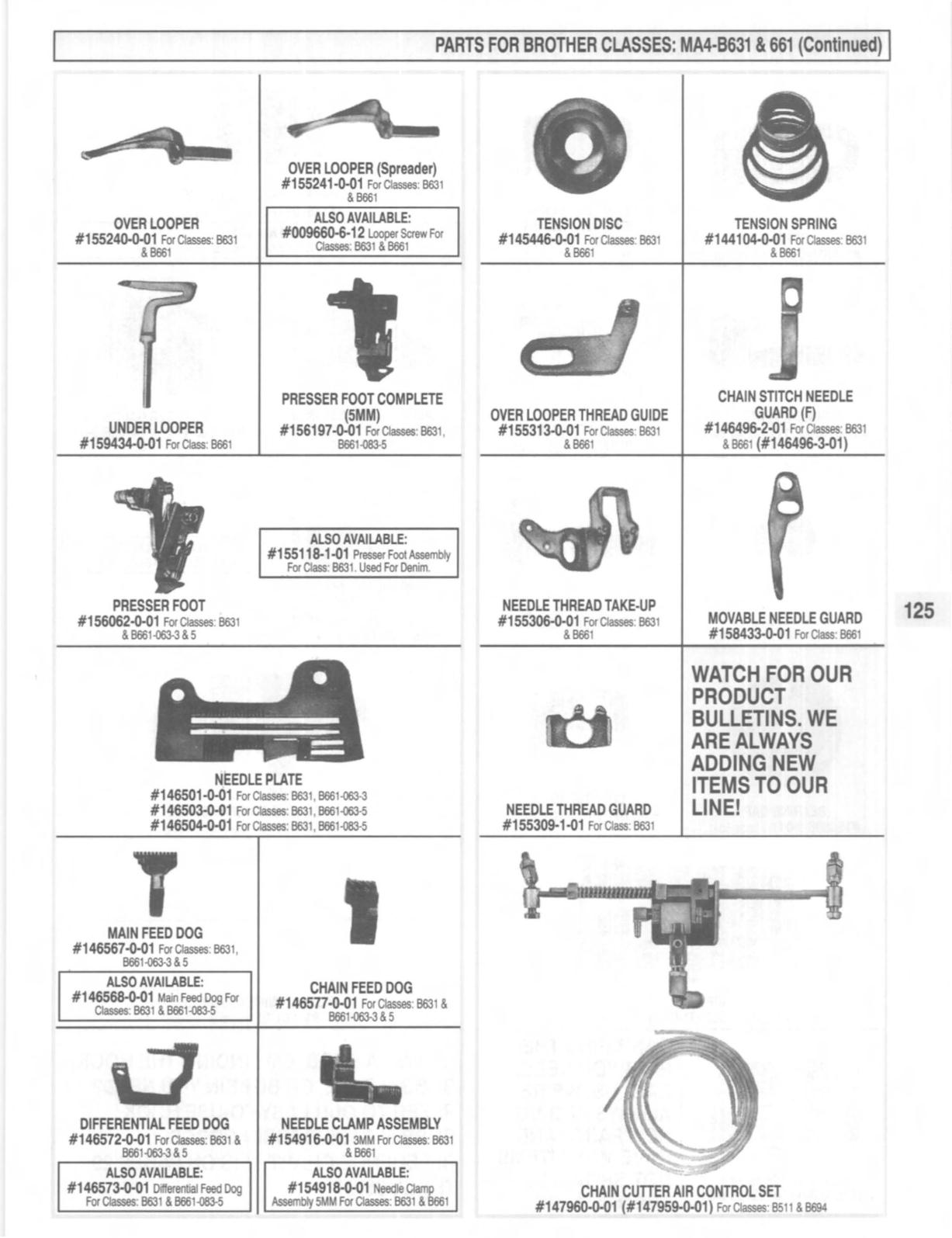 PARTS FOR BROTHER CLASSES: MA4-B631