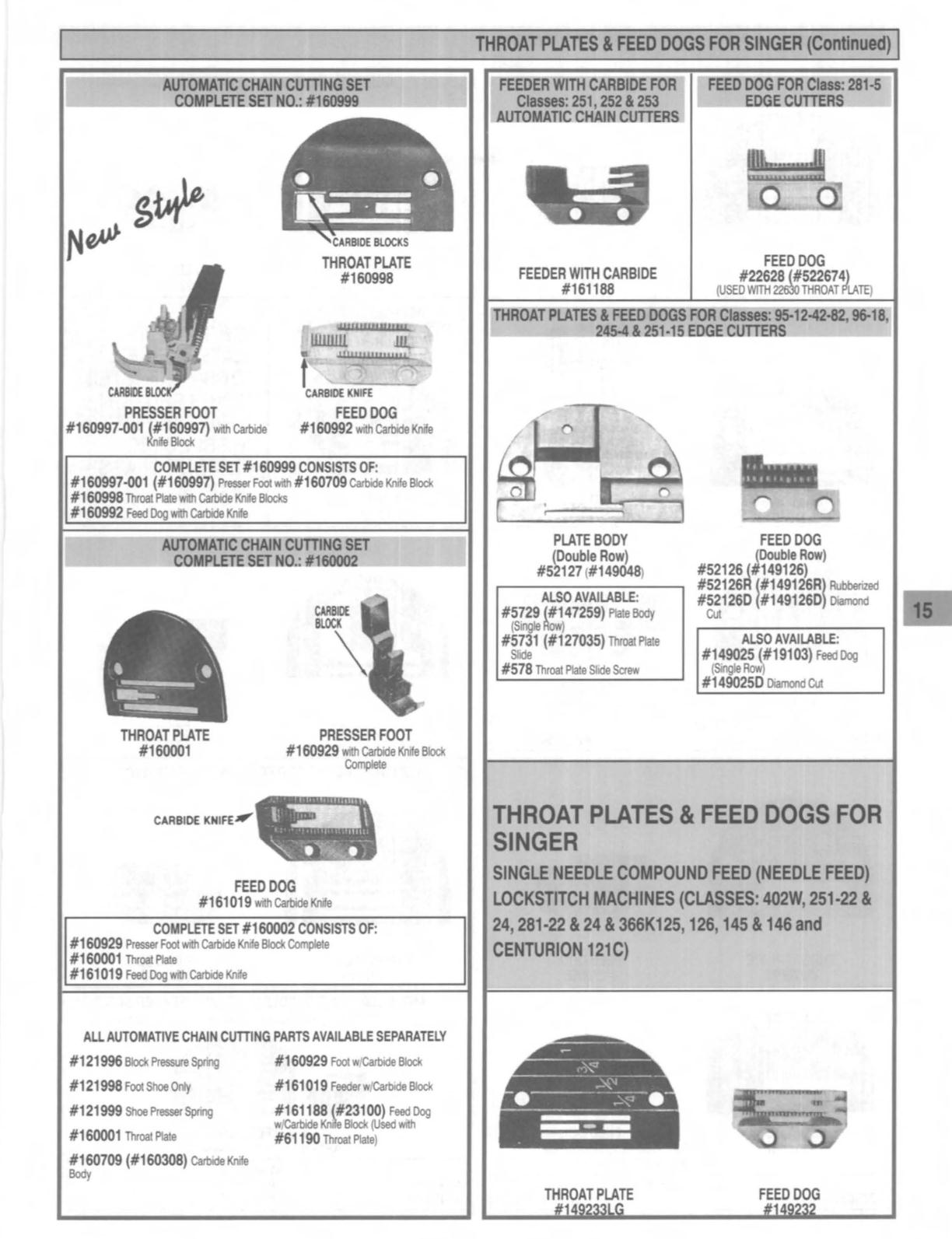 FEED DOGS FOR SINGER