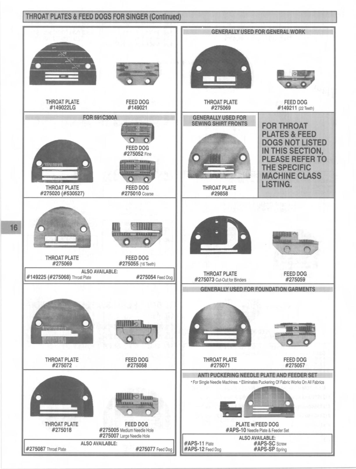 FEED DOGS FOR SINGER