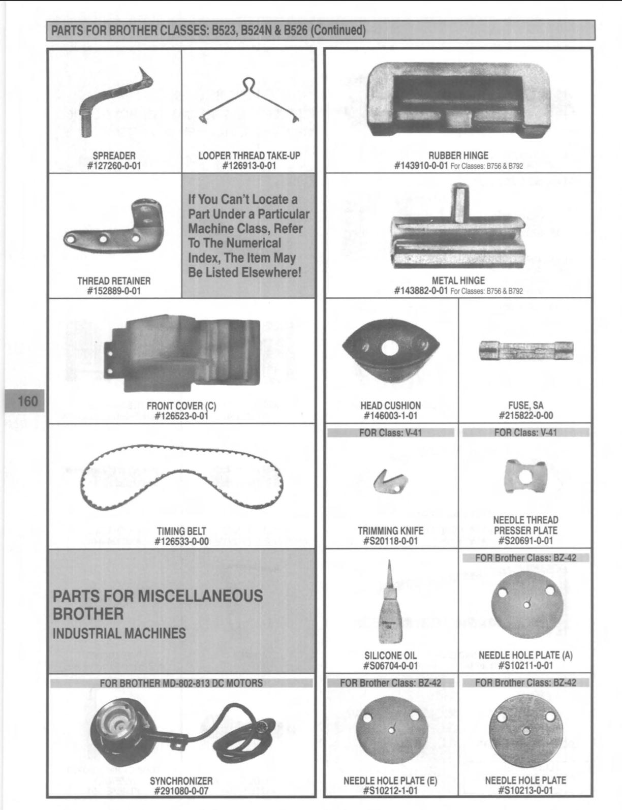 PARTS FOR BROTHER CLASSES: 8523, 8524N • B526