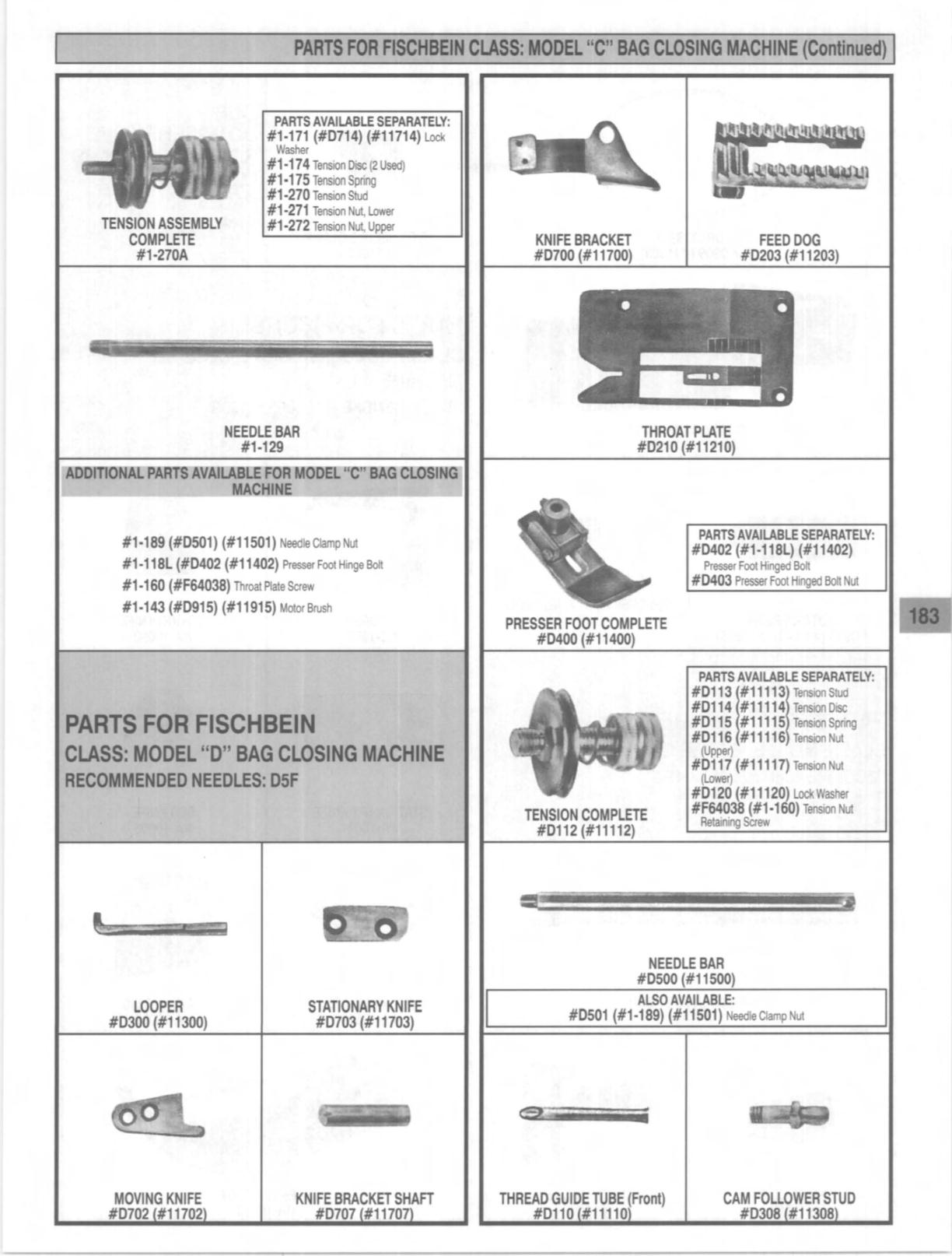 PARTS FOR FISCHBEIN CLASS: MODEL "C" BAG CLOSING MACHINE