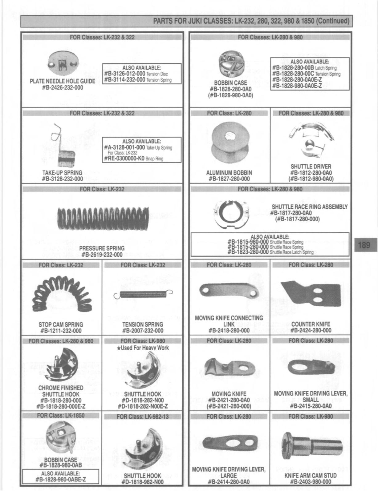 PARTS FOR JUKI CLASSES: LK·232, 280, 322, 980 11850