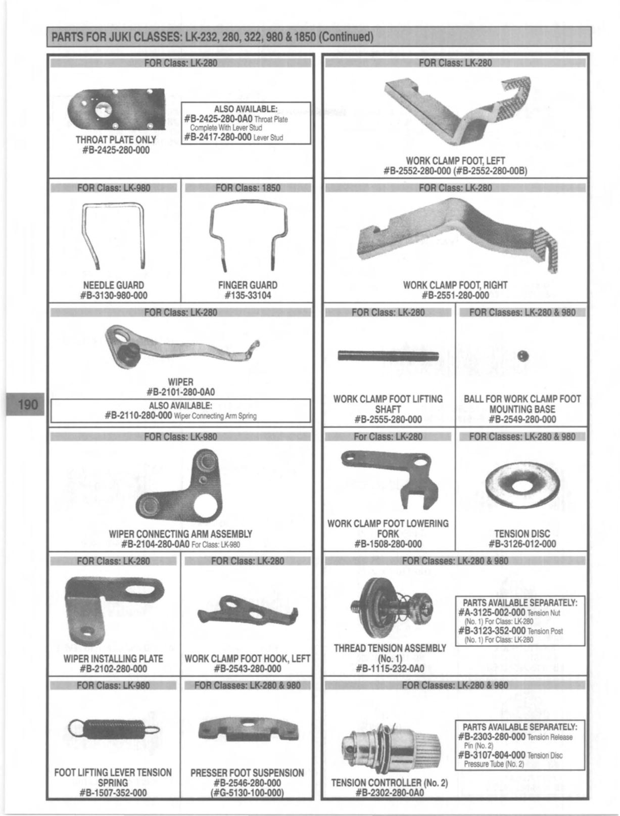 PARTS FOR JUKI CLASSES: LK-232, 280,