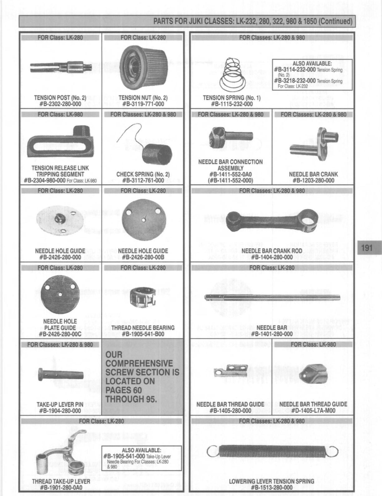 PARTS FOR JUKI CLASSES: LK-232, 280, 322, 980