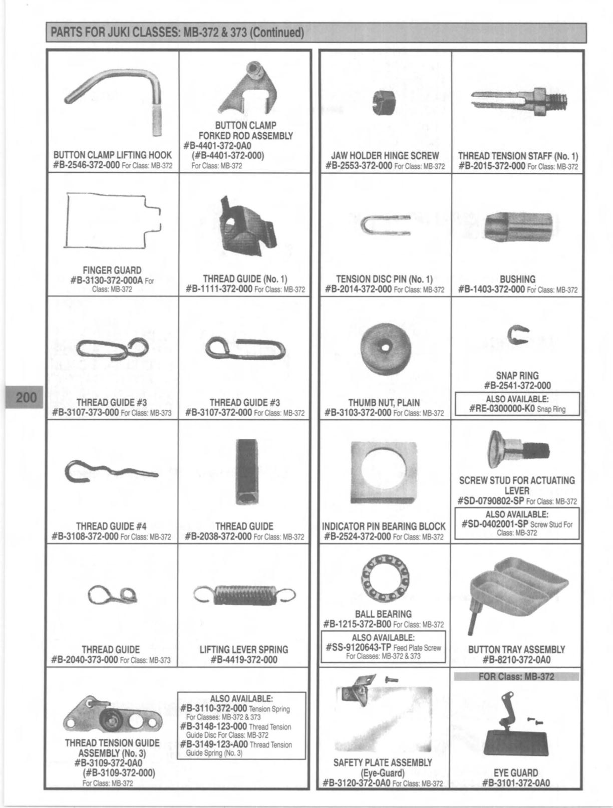 PARTS FOR JUKI CLASSES: MB-372 &373 (Continued)