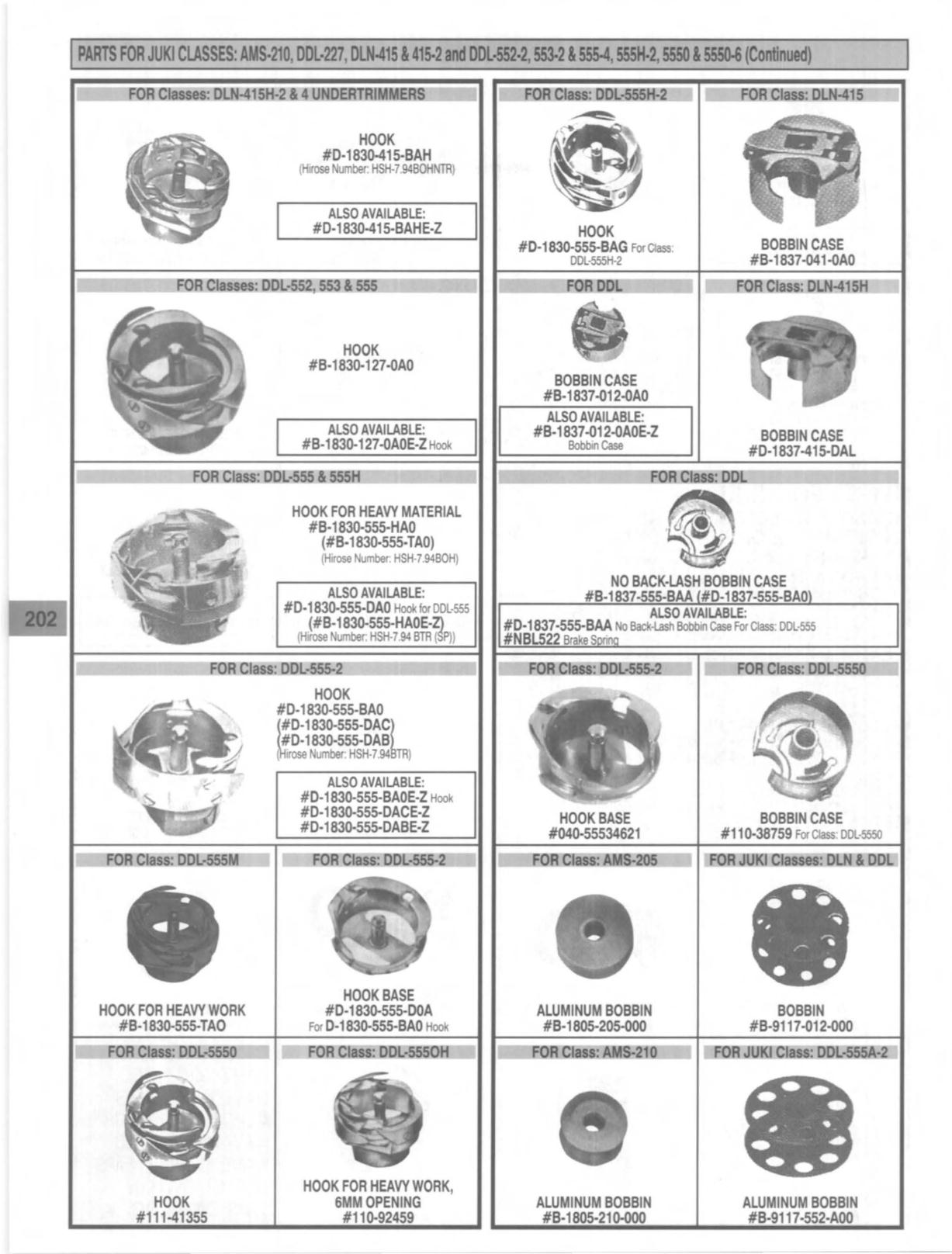 PARTS FOR JUKI ClASSES: AMS-210, DDL·227, OLN.415 &415-2