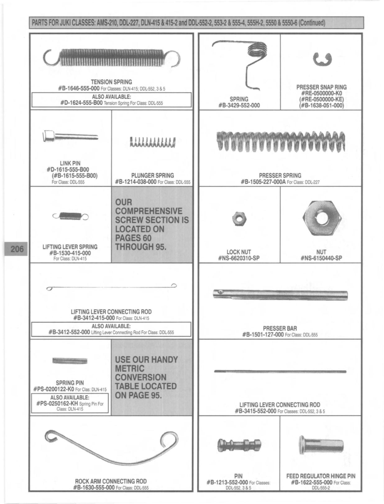 PARTS FOR JUKI ClASSES: AMS-210, DOL-227, DLN-415