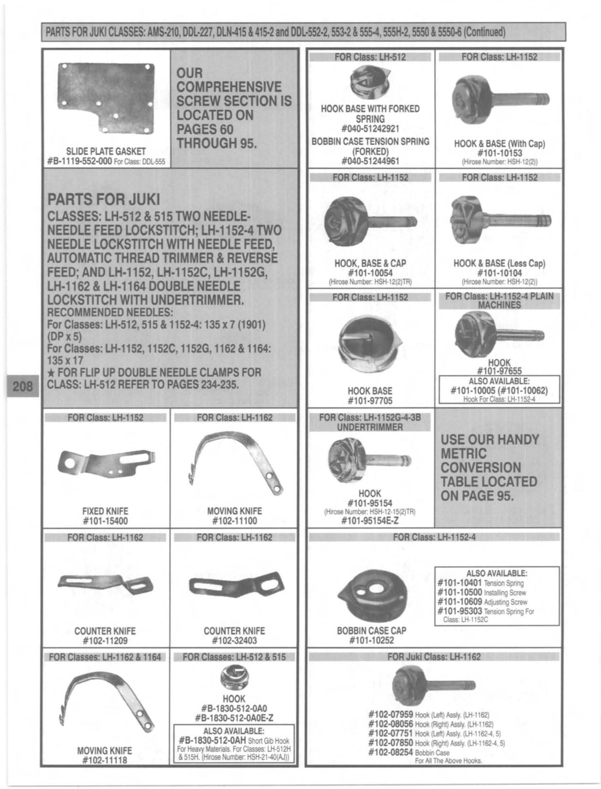 PARTS FOR JUKI ClASSES: AJlS.210, DDl·227, DLN-415 .415-2