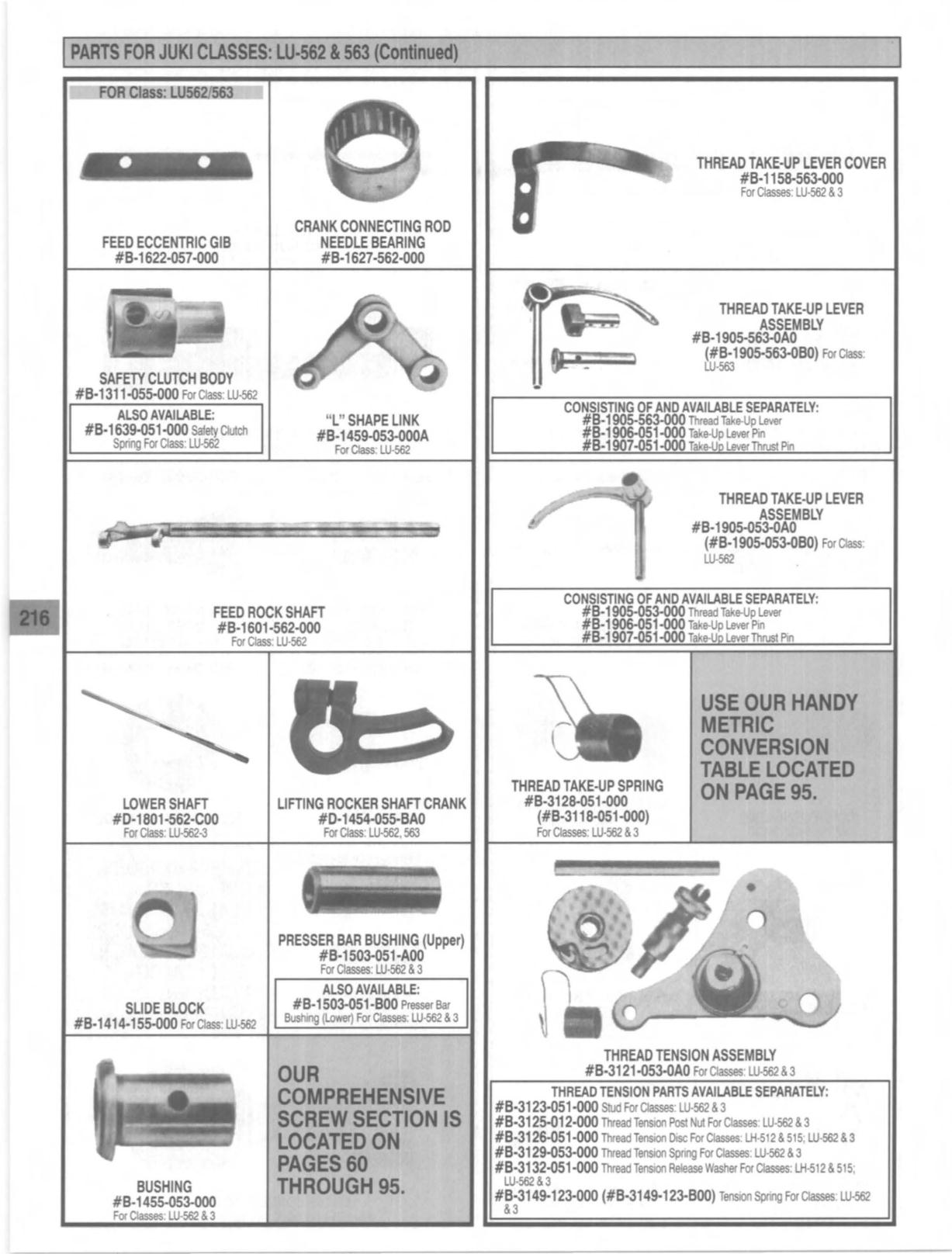 THREAD TENSION PARTS AVAILABLE SEPARATELY: