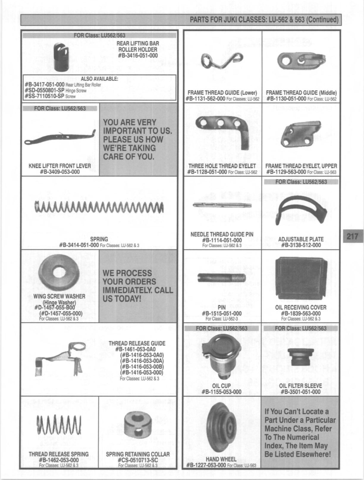 PARTS FOR JUKI CLASSES: LU-562 • 563 (ContInued)
