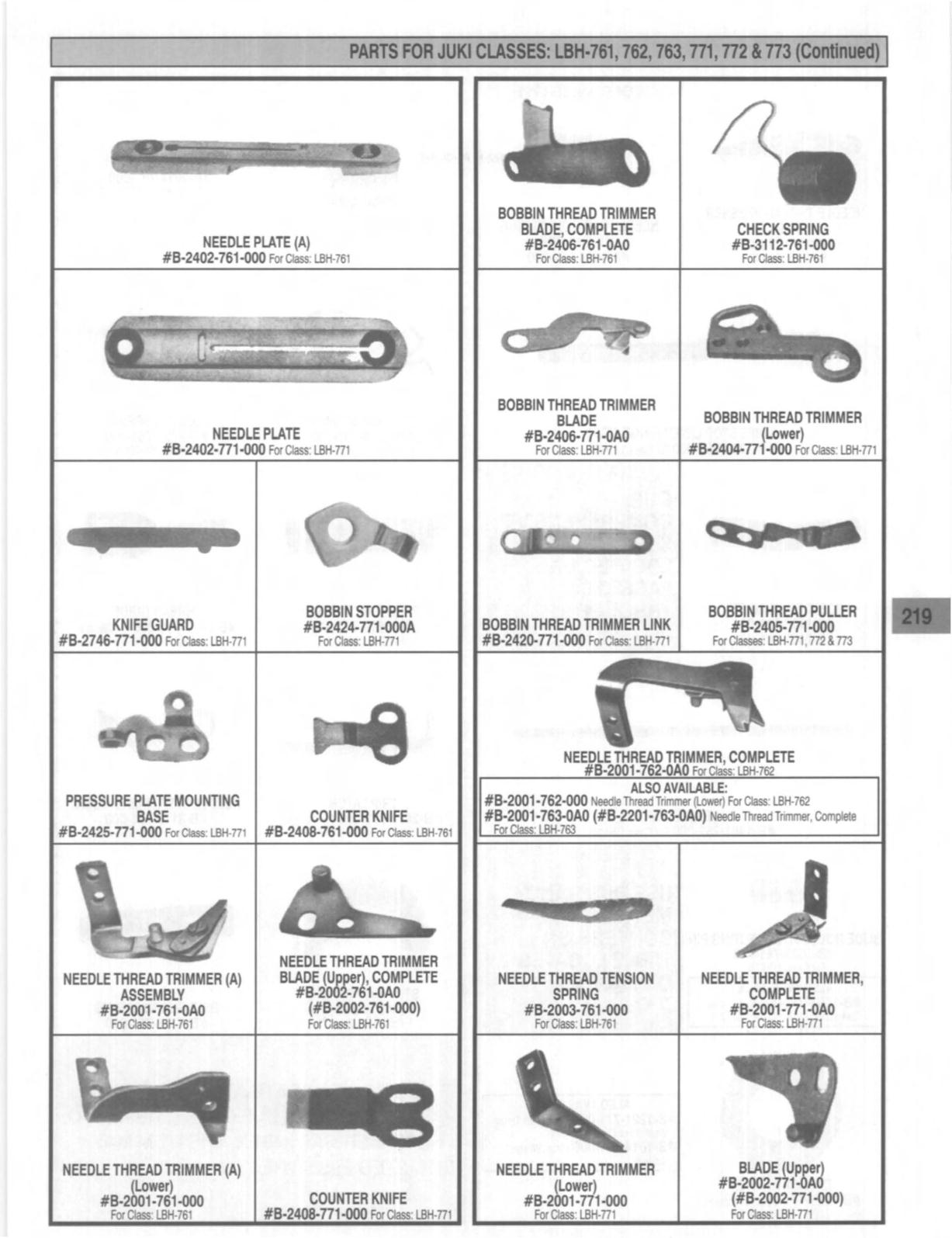 PARTS FOR JUKI CLASSES: LBH-761, 762, 763,
