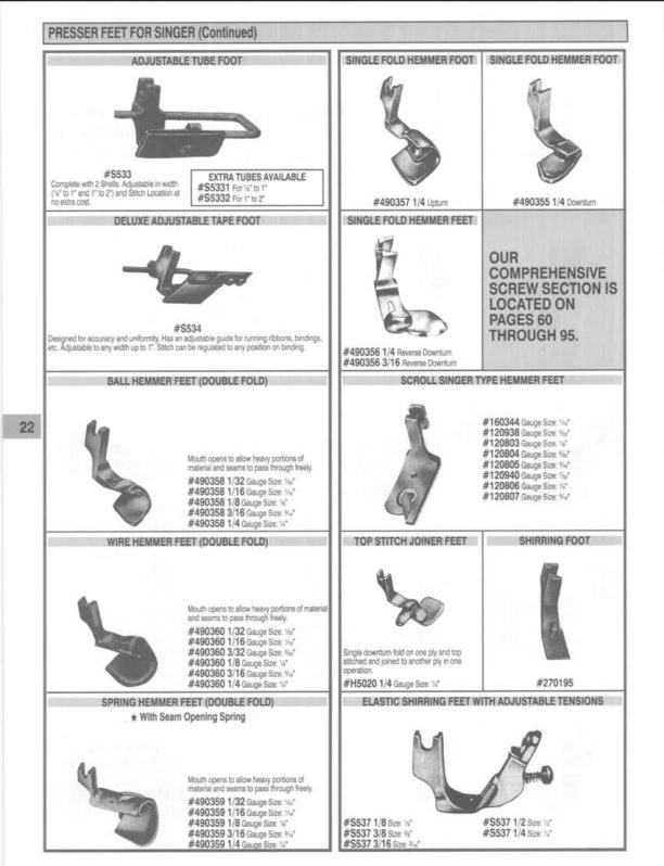 PRESSER FEET FOR SINGER (Continued)
