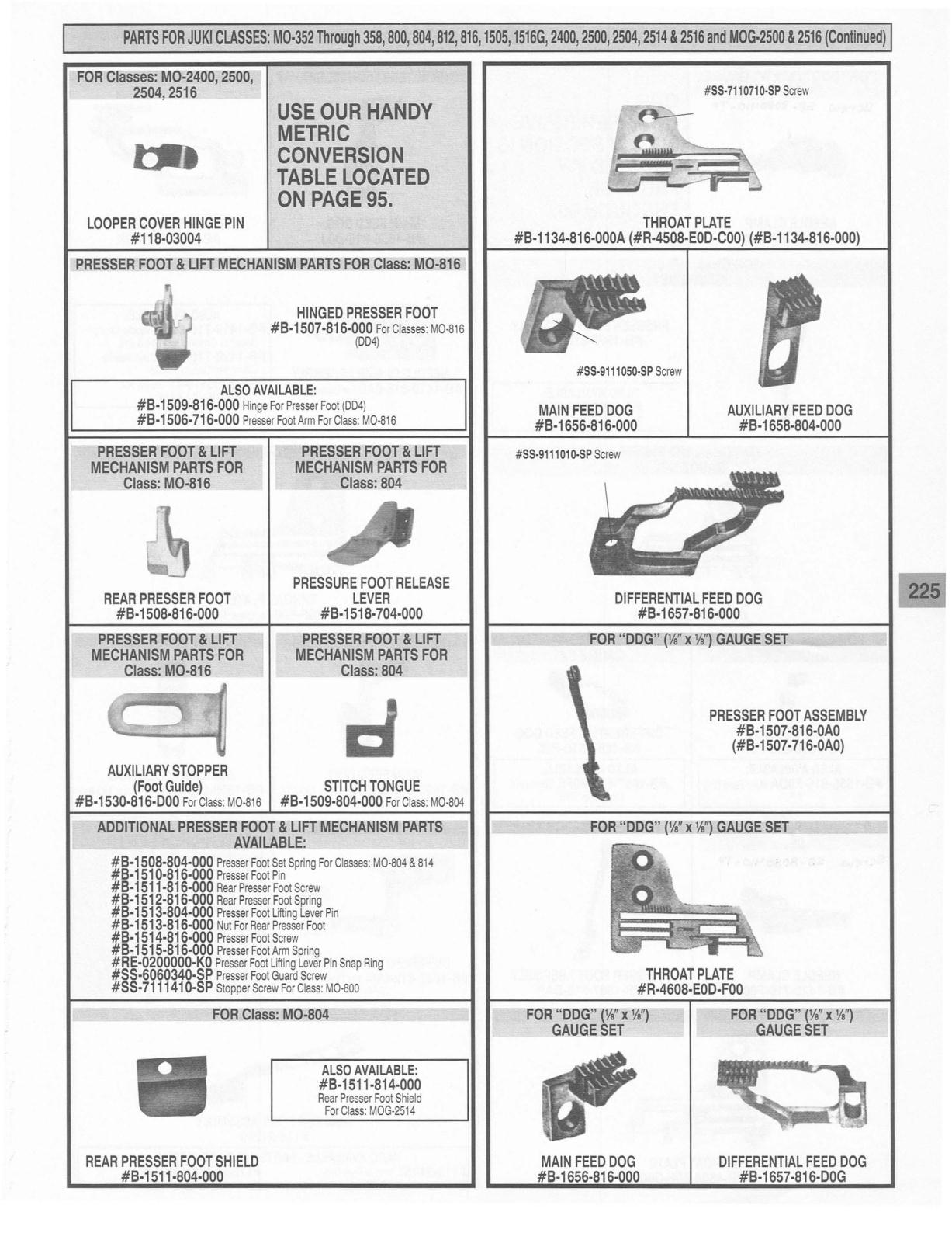 PARTS FOR JUKI CLASSES: MO·352 Through 358, 800, 804, 812, 816, 1505, 1516G, 2400, 2500, 2504, 2514