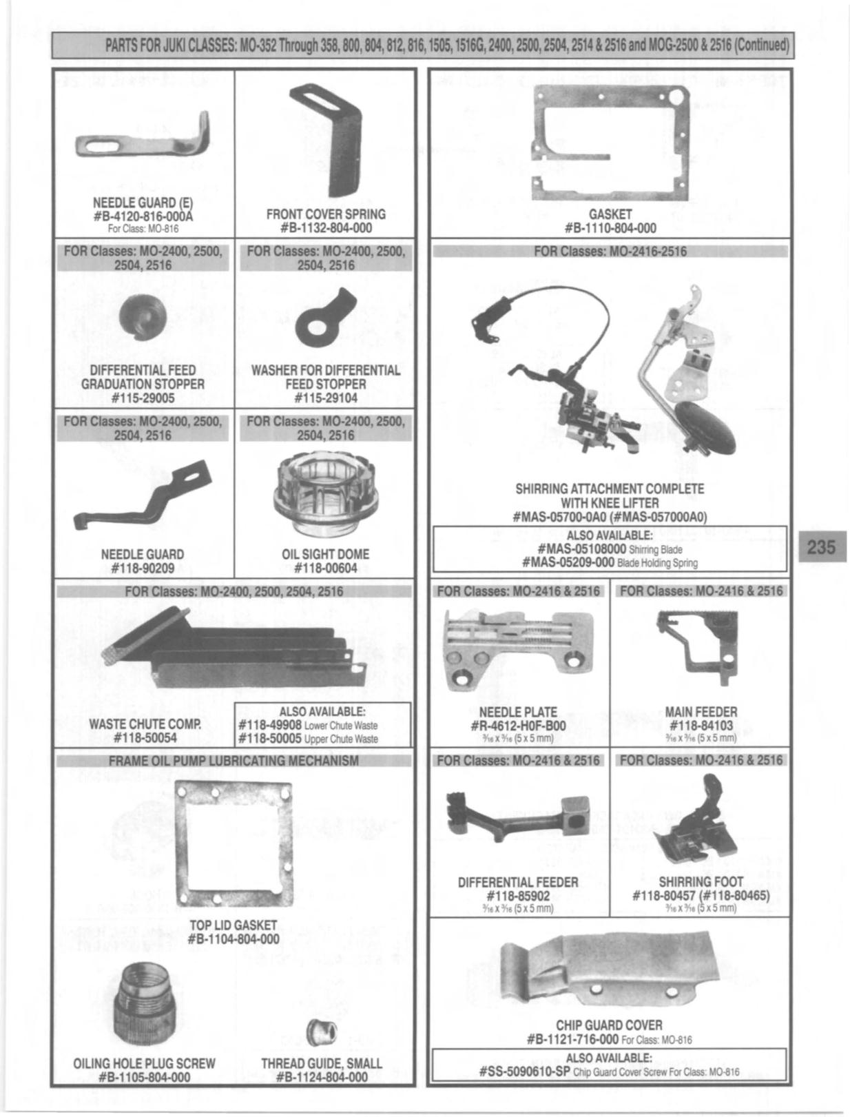 PARTS FOR JUKI ClASSES: