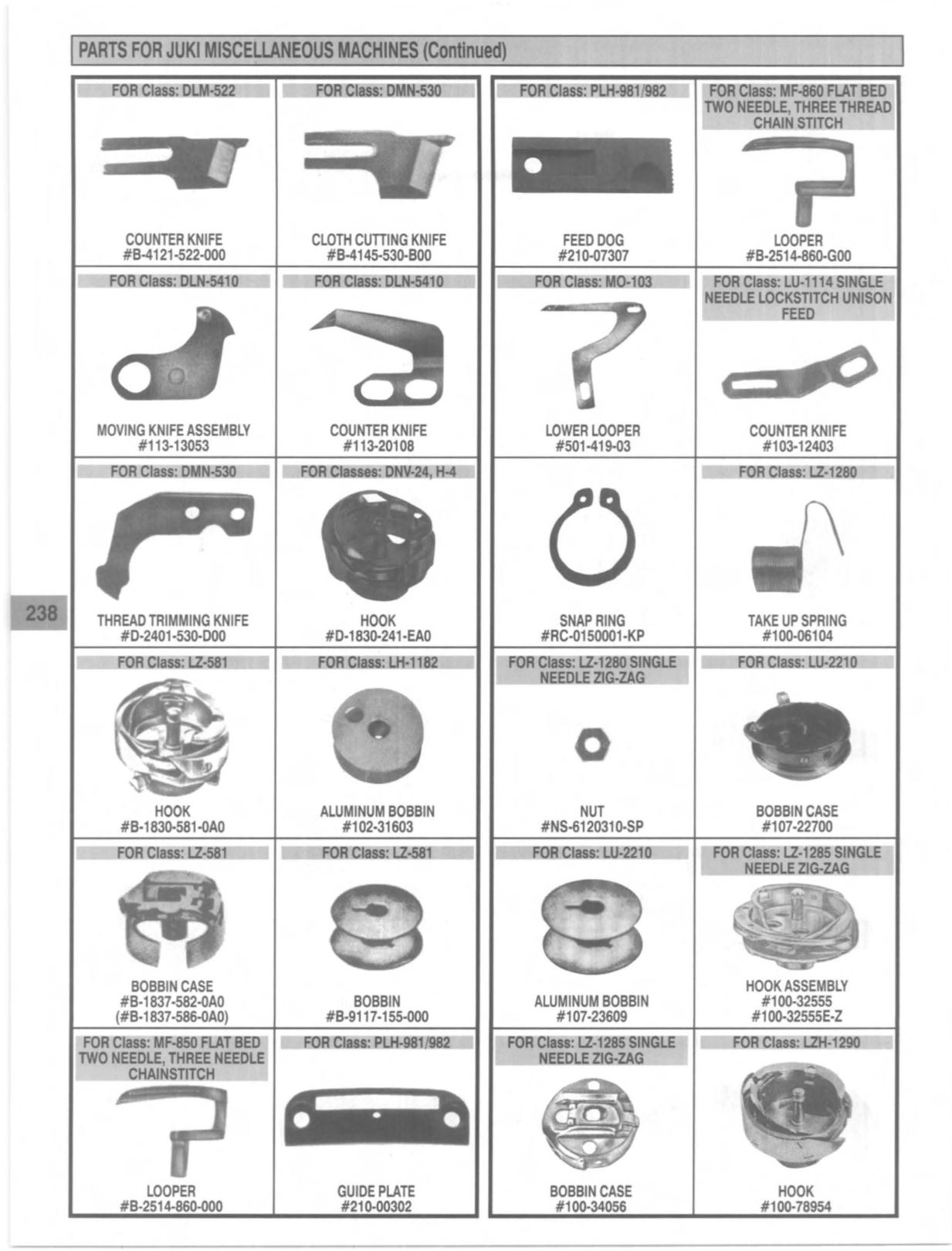 PARTS FOR JUKI MISCEUANEOUS MACHINES (ContInued)