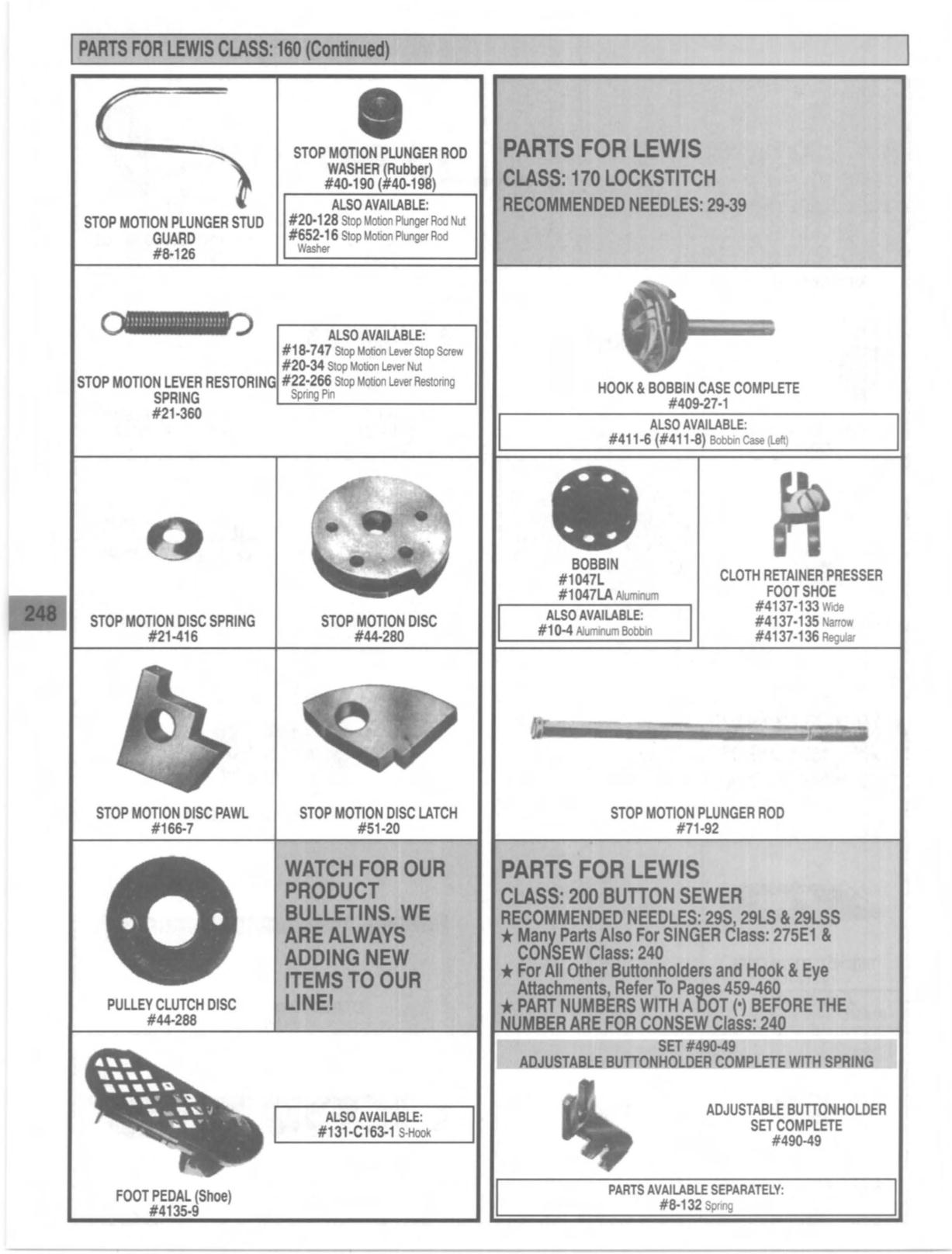 PARTS FOR LEWIS CLASS: 160 (ContInued)