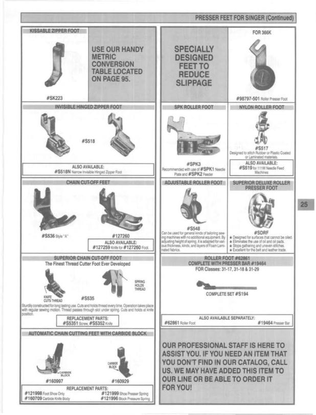 PRESSER FEET FOR SINGER