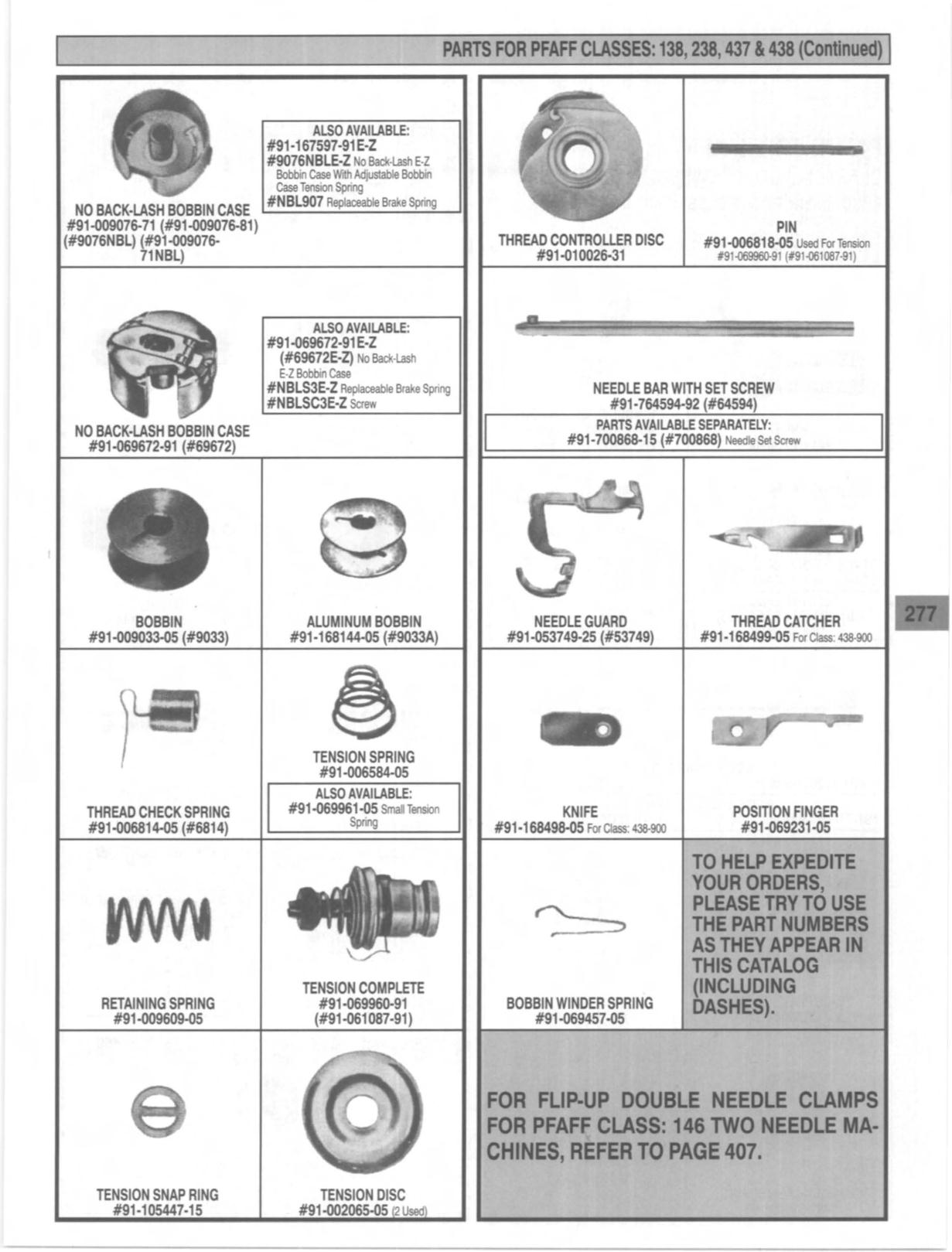 PARTS FOR PFAFF CLASSES: 138, 238, 437 • 438