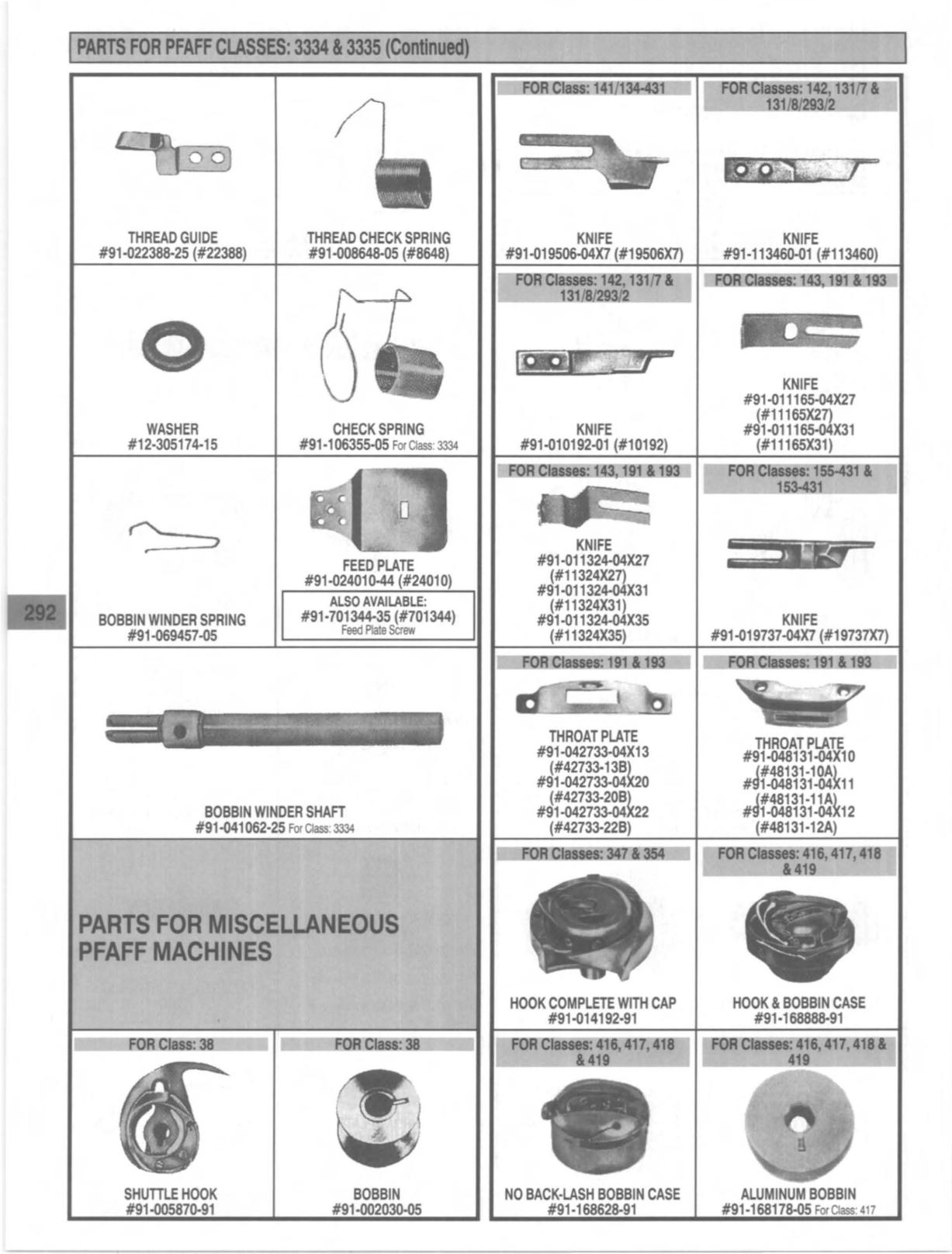 PARTS FOR PFAFF CLASSES: 3334 , 3335