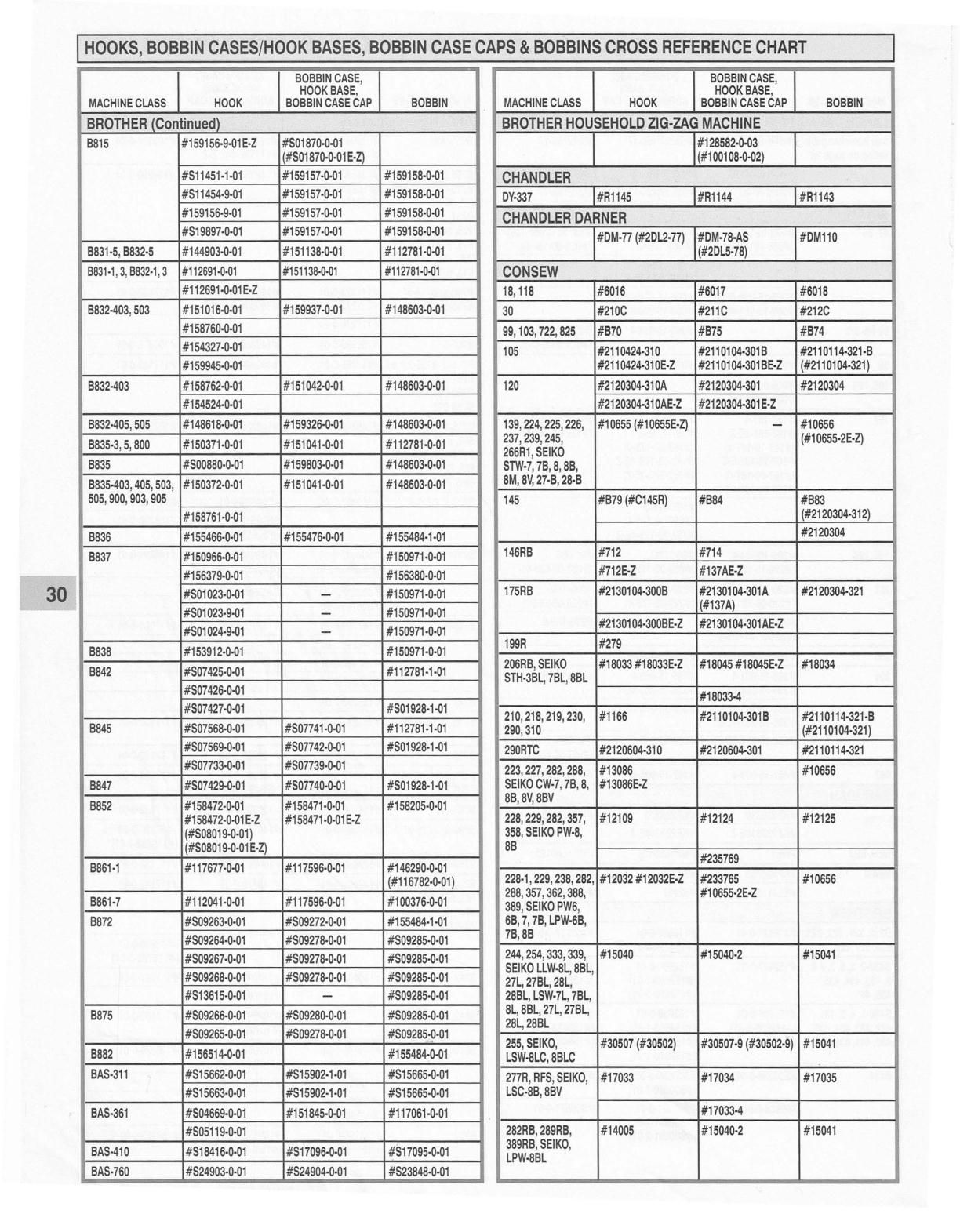 HOOKS, BOBBIN CASES/HOOK BASES, BOBBIN CASE CAPS