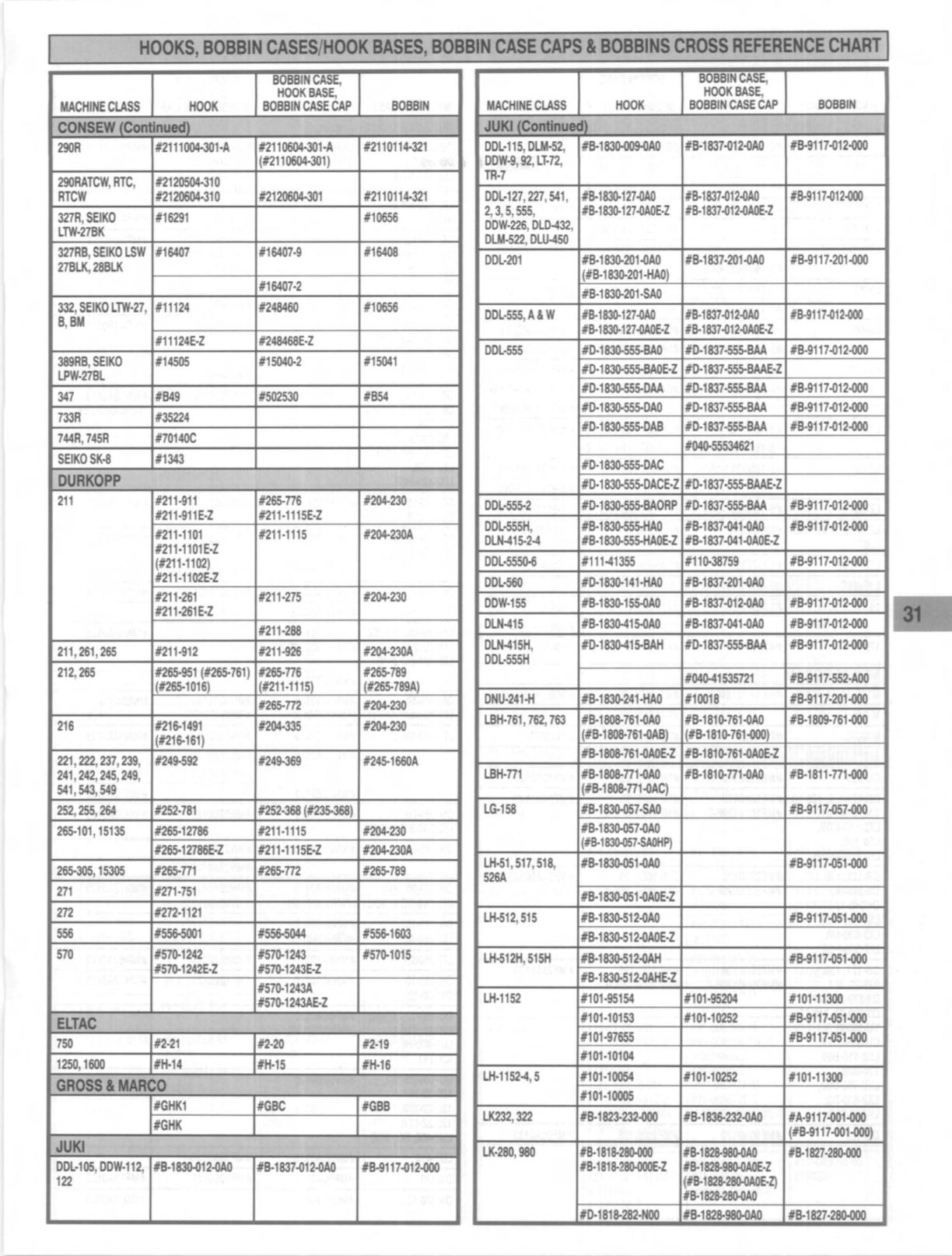 HOOKS, BOBBIN CASES/HOOK BASES, BOBBIN CASE CAPS