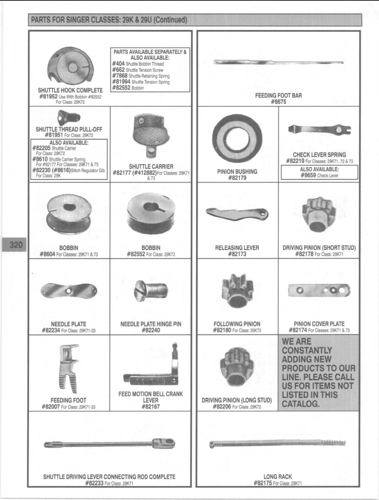 PARTS FOR SINGER CLASSES: 29K
