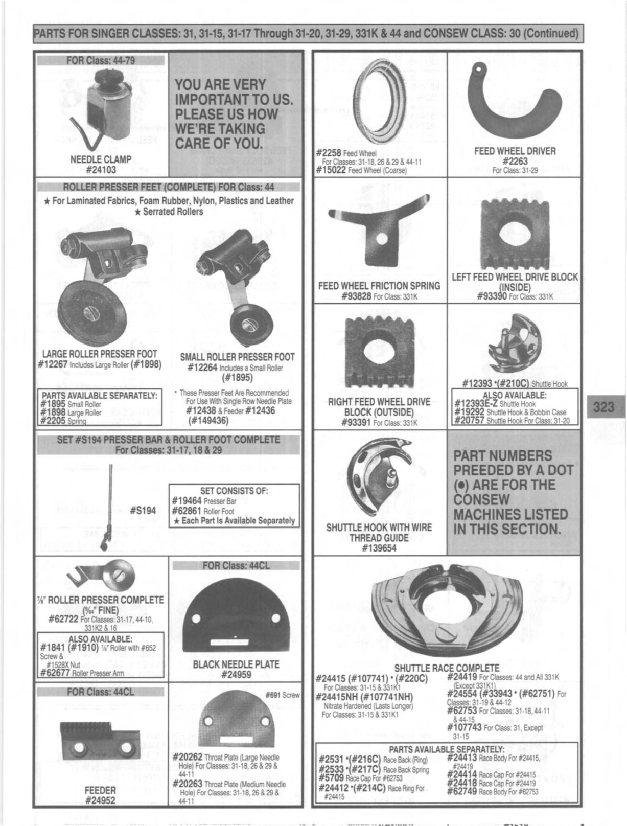 pARTS FOR SINGER CLASSES: 31, 31-15, 31-17Through 31-20, 31-29, 331K