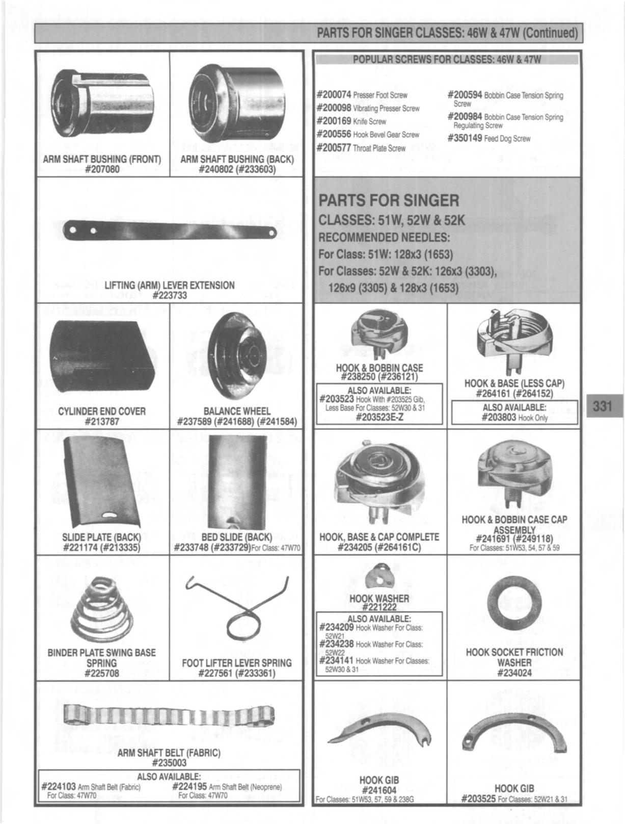 PARTS FOR SINGER CLASSES: 46W • 47W