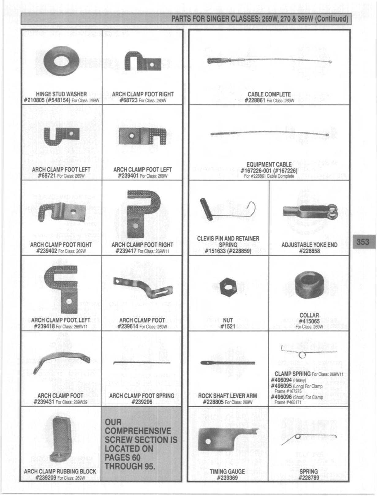 PARTS FOR SINGER CLASSES: 269W, 270