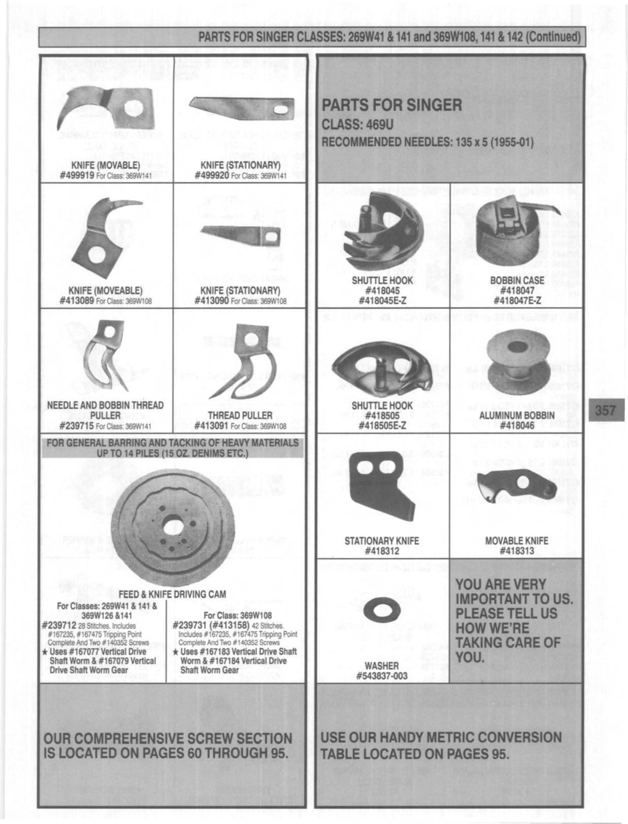 PARTS FOR SINGER CLASSES: 289W41