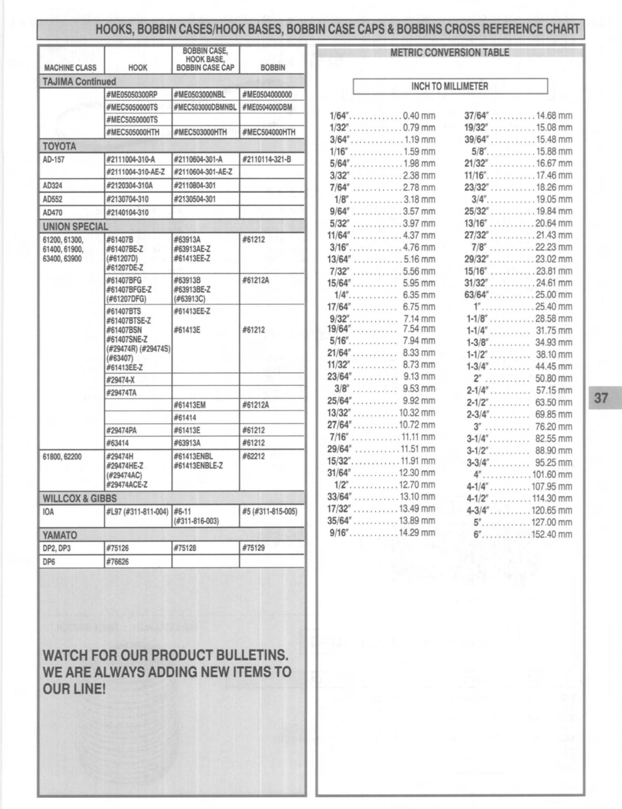 HOOKS, BOBBIN CASES/HOOK BASES, BOBBIN CASE CAPS