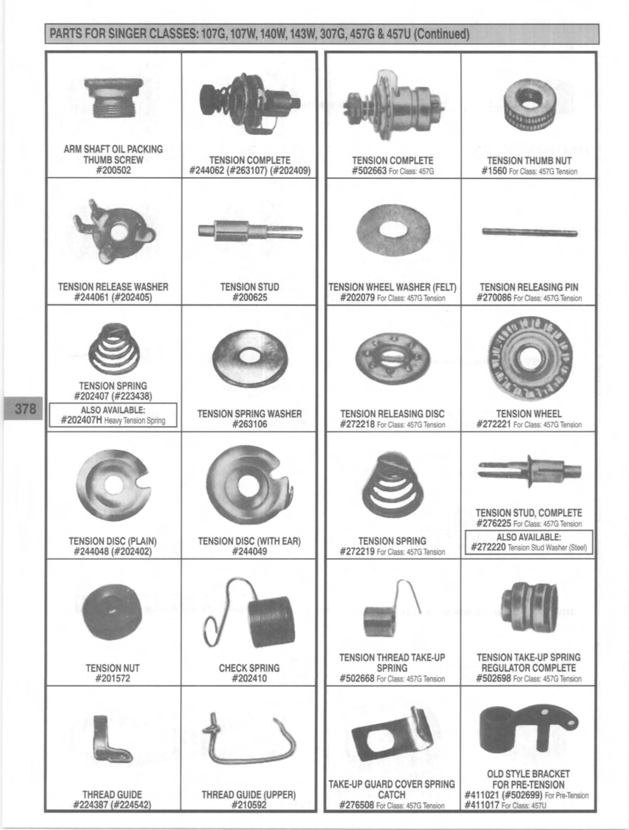 PARTS FOR SINGER CLASSES: 107G, 107W, 140W, 143W, 307G, 457G