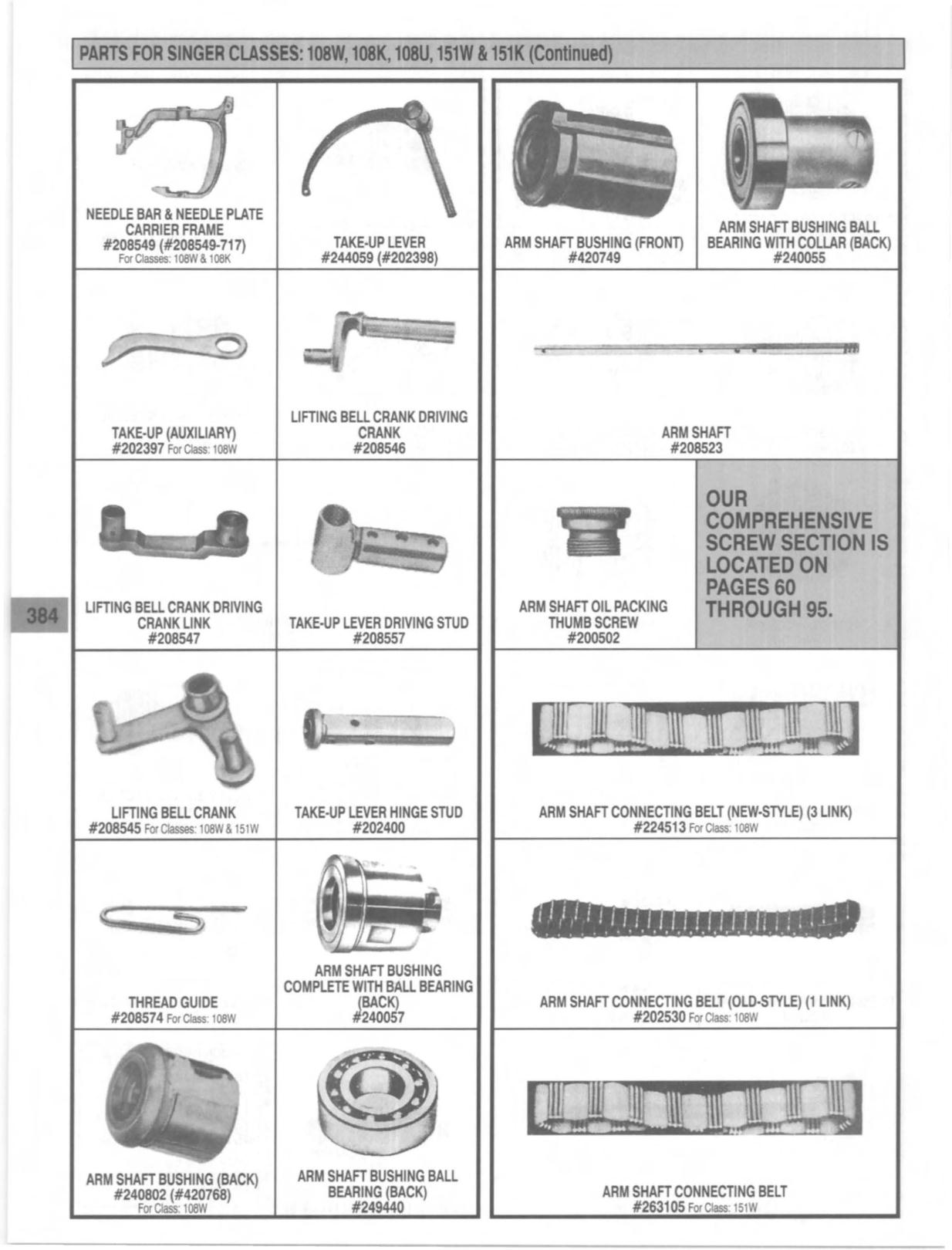 PARTS FOR SINGER CLASSES: 108W, 108K, l08U, 151W , 151K (Continued)