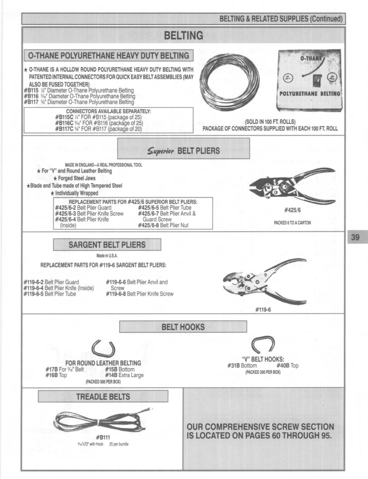 REPLACEMENT PARTS FOR #119-6 SARGENT BELT PLIERS: