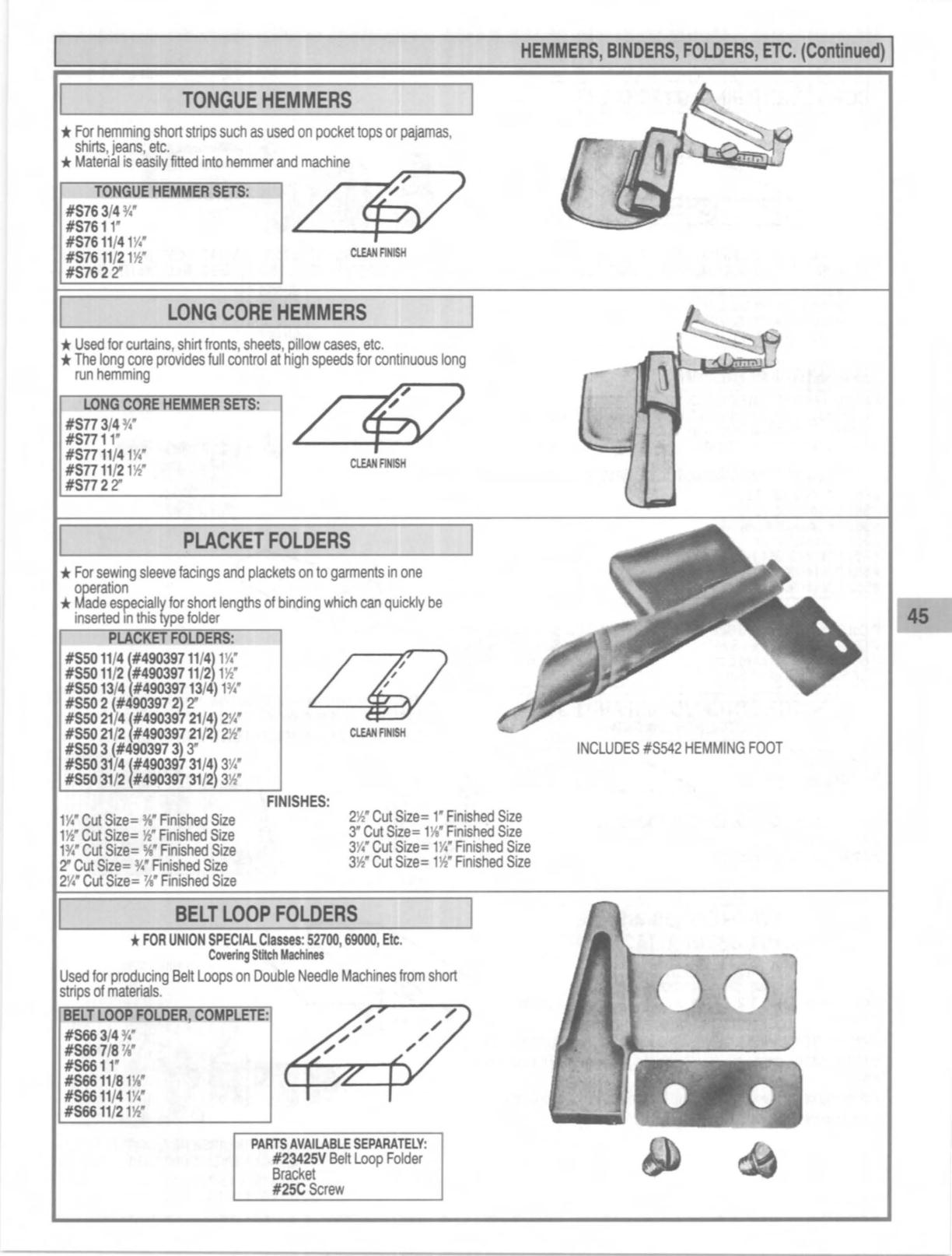 HEMMERS, BINDERS, FOLDERS,