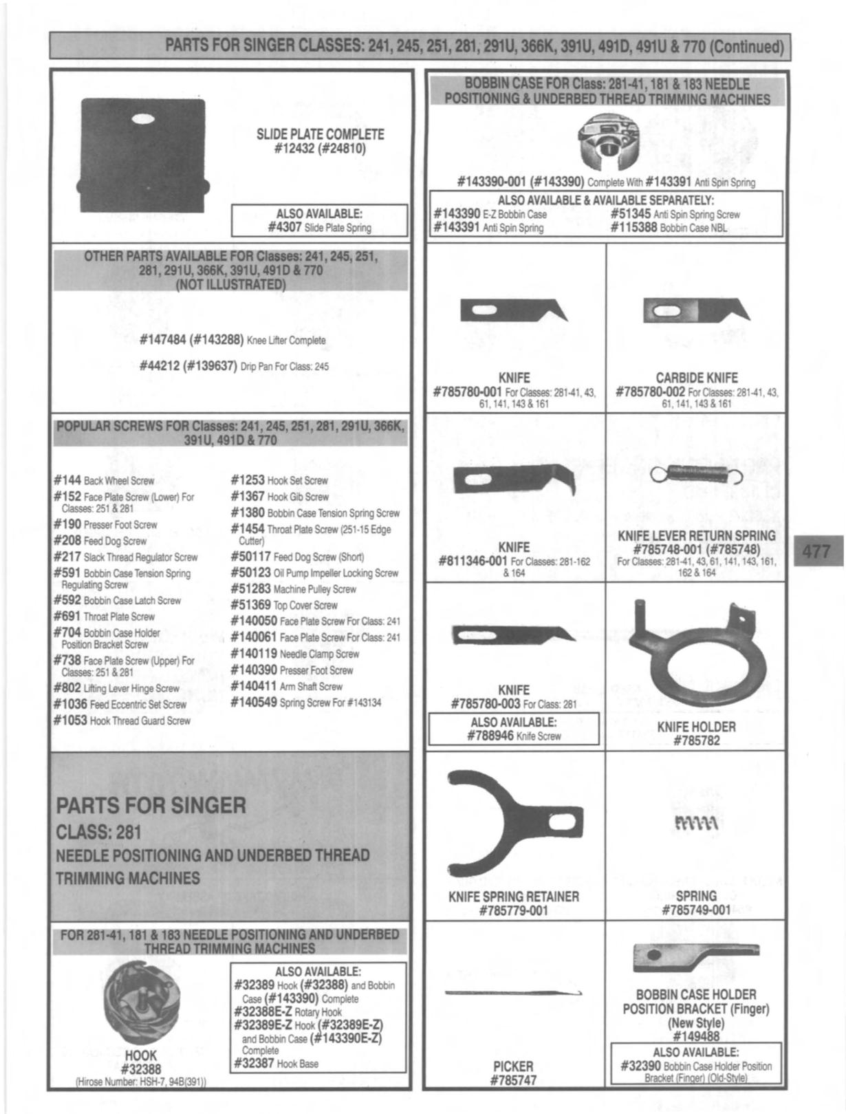 PARTS FOR SINGER