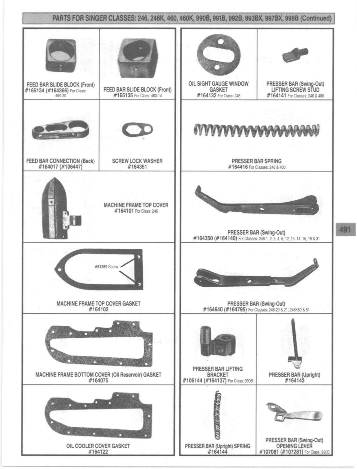 PARTS FOR SINGER CLASSES: 246, 2461(, 460, 46OK, 9908, 9918, 9928,