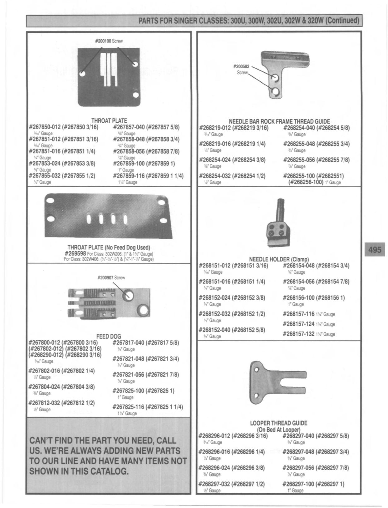 PARTS FOR SINGER CLASSES: 300U, 300W, 302U, 302W