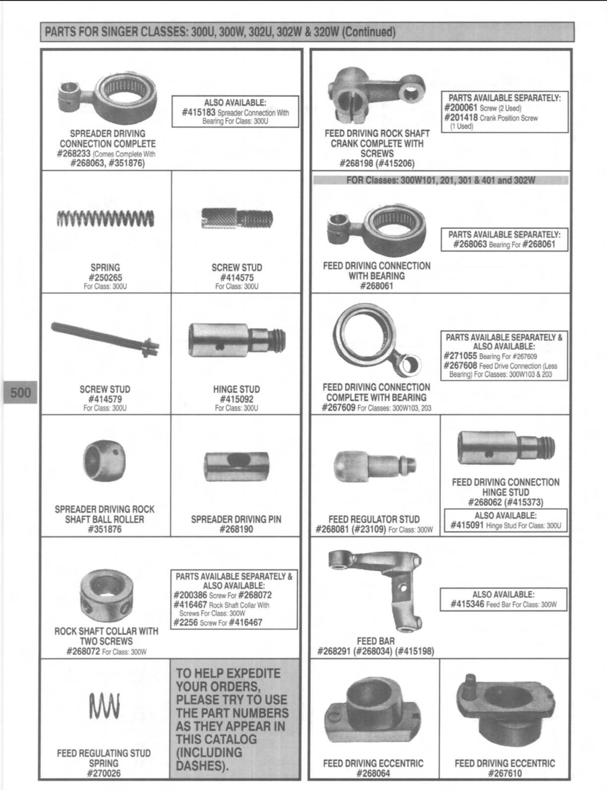 PARTS FOR SINGER CLASSES: 3000, 3OOW, 302U, 302W