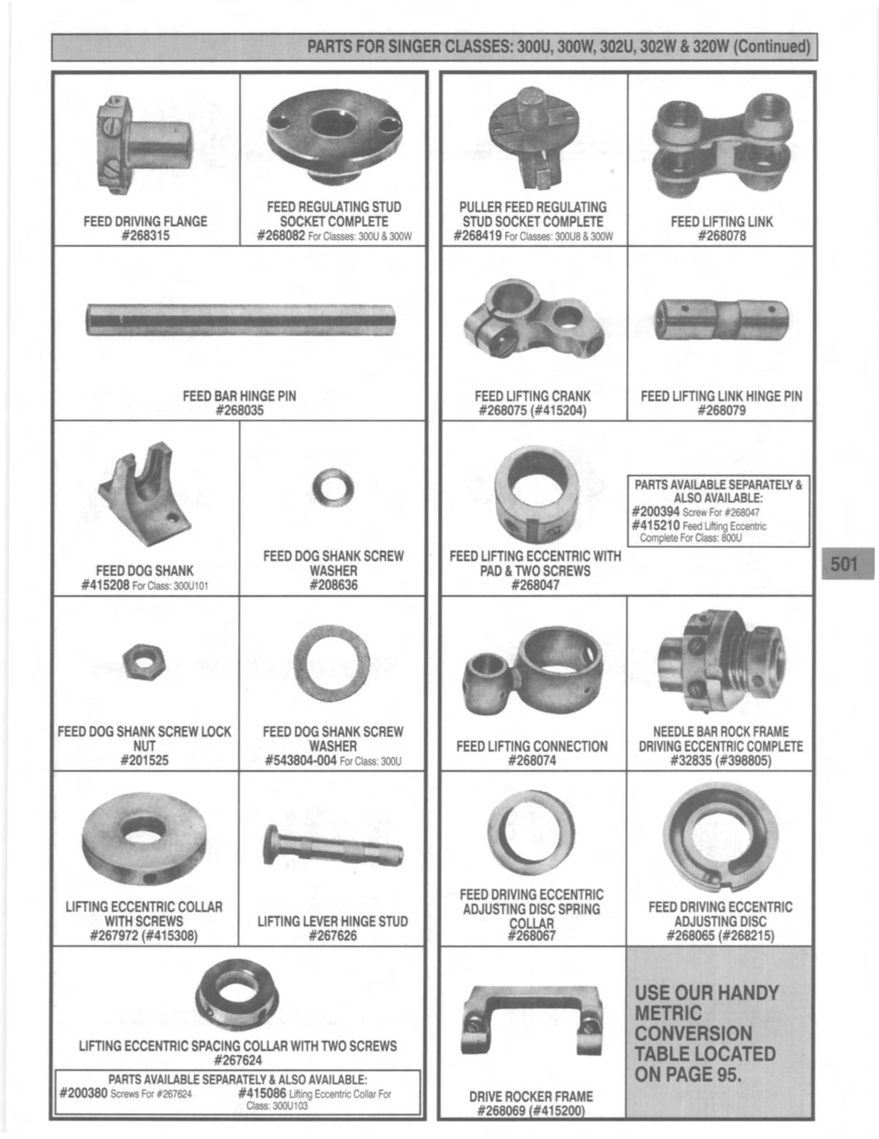 PARTS FOR SINGER CLASSES: 3OOU, 3OOW, 302U, 302W
