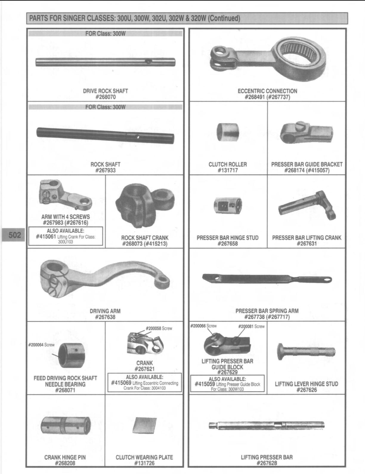 PARTS FOR SINGER CLASSES: 300U, 300W, 302U, 302W