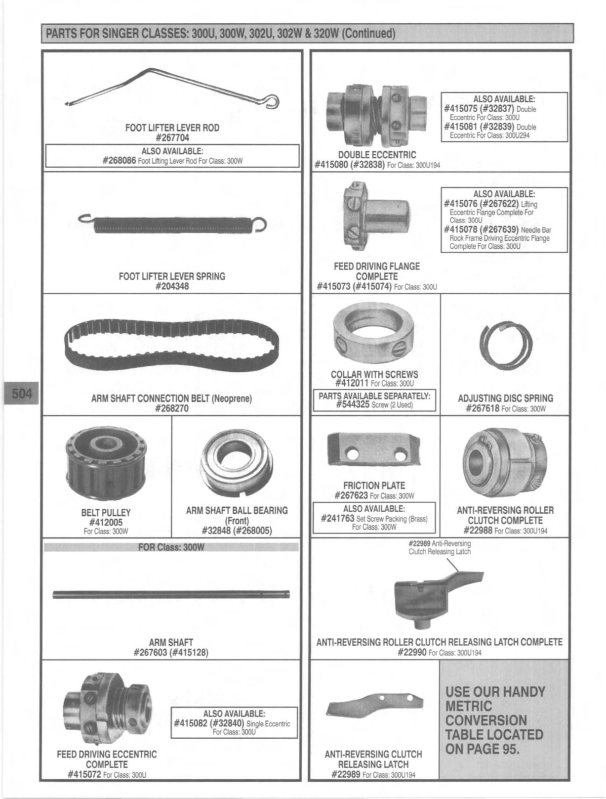 PARTS FOR SINGER CLASSES: 3000, 3OOW, 302U, 302W
