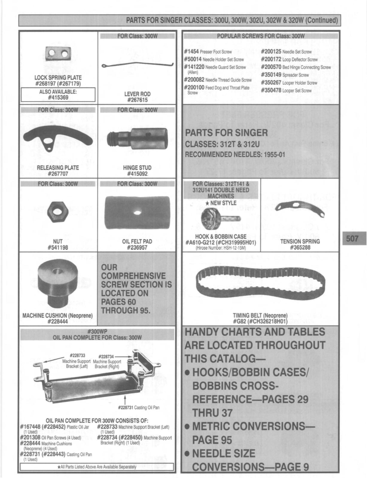 PARTS FOR SINGER CLASSES: 3OOU, 3OOW, 302U, 302W , 320W (Continued)